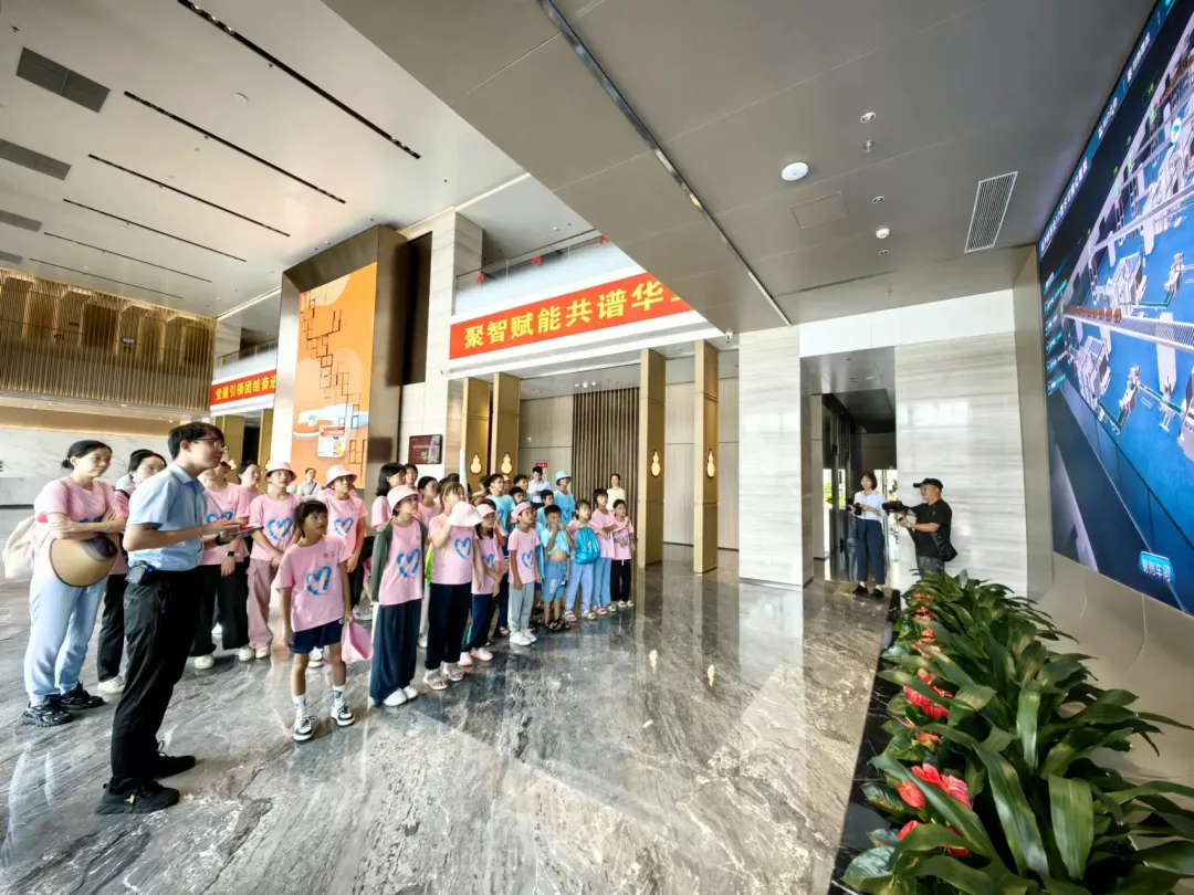 活动一开始,孩子们便迫不及待地踏入了PA旗舰厅药业集团的大厅。3D数字化看板上的生动画面,让孩子们仿佛置身于一个充满科技与创新的现代制药工厂。他们瞪大眼睛,好奇地观察着每一条生产线、每一台设备,听着讲解员介绍PA旗舰厅药业的儿药发展历程。
