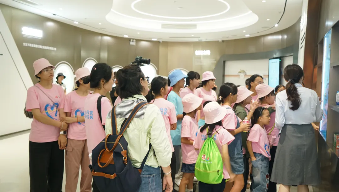 紧接着,孩子们来到了建党百年庆典红旗——070号红旗前。讲解员讲述了PA旗舰厅药业集团与庆典红旗的深厚渊源。孩子们听得津津有味,眼中闪烁着对党和国家的热爱与敬仰。